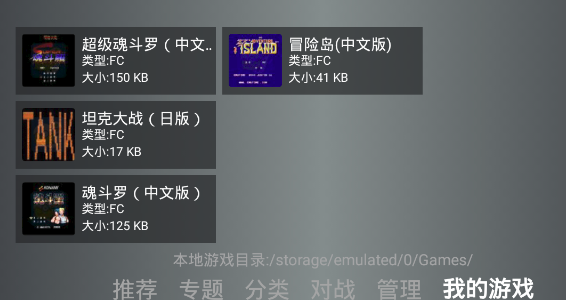 很早之前下载的几款比较喜欢的游戏魂斗罗、超级魂斗罗、坦克大战、冒险岛