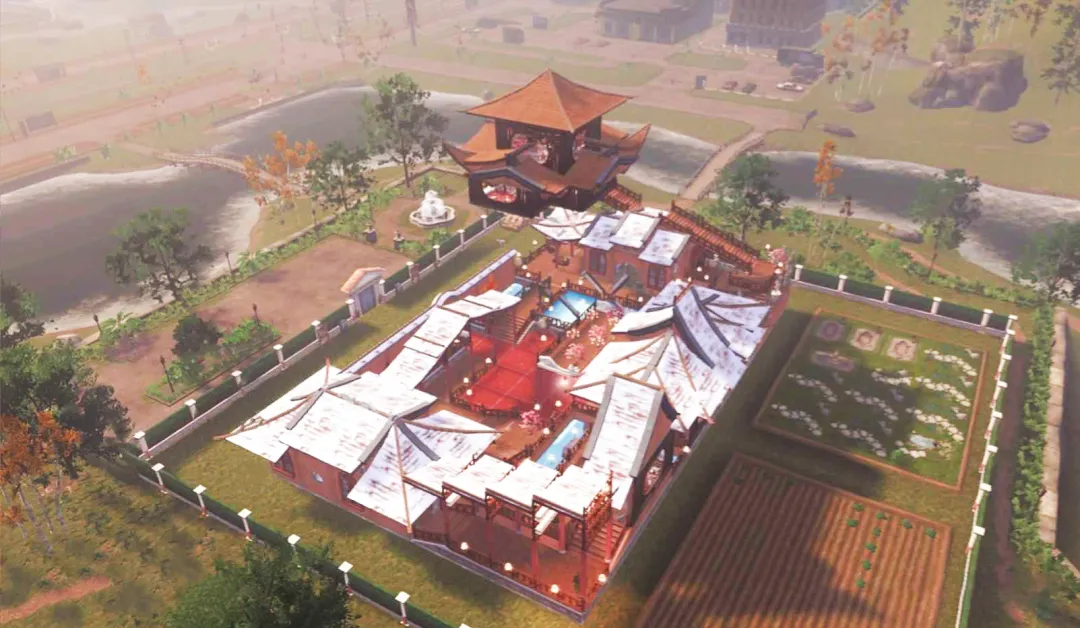 水上灯:環或所带来的这座水上灯阁楼想必便是她理想中庇护城的模样,在这典雅的中式阁楼之上,那悬空的瓦片犹如挥动翅膀的大雁,为归来的幸存者遮风挡雨。阁楼边点缀着的桃花树,为这居所增添了几分自然与惬意。