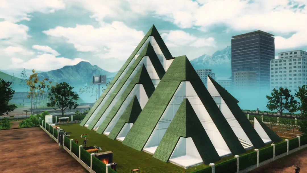 迷幻三角:建筑鬼才妖老板带着他极具特色的几何三角建筑来参赛了,他心目中的庇护城是迷幻风的不规则建筑,碧绿的外观和层层递进的结构。远看像一座崎岖的山峦,简约又不乏特色的设计,可以为城中人遮风挡雨,是末世下的一座温馨去处了。