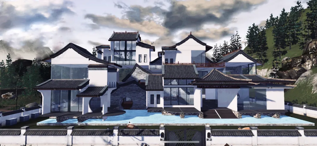 云水在天:沙石古堡柚子带来的蓝图是新中式水乡小镇风格,桥街相连,依河筑屋,高高的垣墙夹着曲折的街巷实现了清澈的河流在房屋间畅漾流动,经典的徽派建筑风格深受幸存者们的喜爱。在沙石古堡柚子的心中庇护城正是这样一处清净水乡,无事烦扰,安宁和谐,曲径通幽的特点也让这个作品取得了“末世迷宫”的称号。