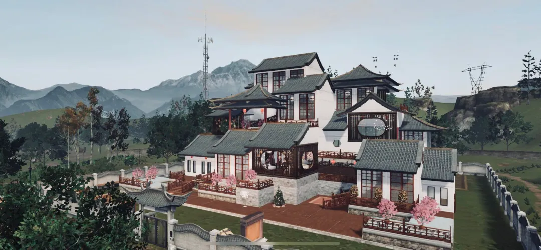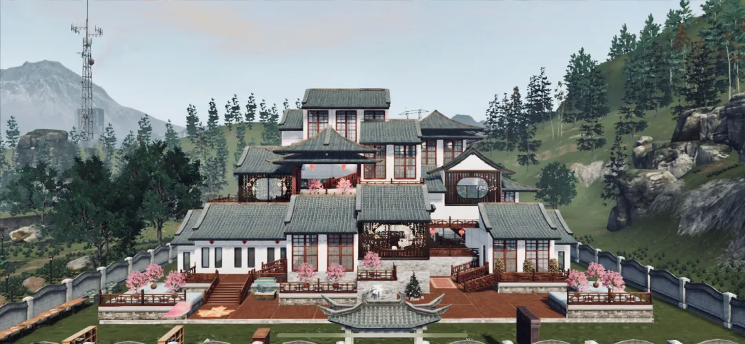 烟云:来看看建筑才俊颜颜大长腿,带来的中式桃花山庄蓝图,处处可见的桃花是这座建筑的灵魂。建筑结构采用较传统的,居中堆砌式风格,庄严稳重,星星闪闪的灯光充满了烟火气,即使黑夜降临末世幸存者也无需畏惧,几盏红灯笼便可照亮前路。