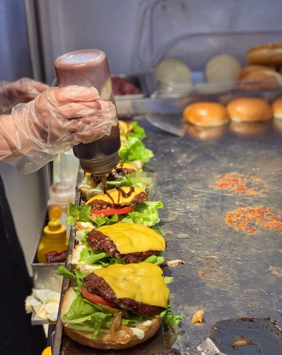 我想很多人也都是因为这一点才会排队都买他们家的汉堡,确实是让你看到是现场制作的肉。还有不少家长在孩子放学前就过来买,买给自己的小孩吃,可见老板的这种方式还是很有信任背书的。
