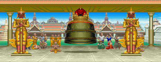 隆在《街头霸王2》中的专属场景,一直都被沿用,而且多年来一直都没有什么变化。并在后期的版本中越来越高清。