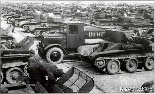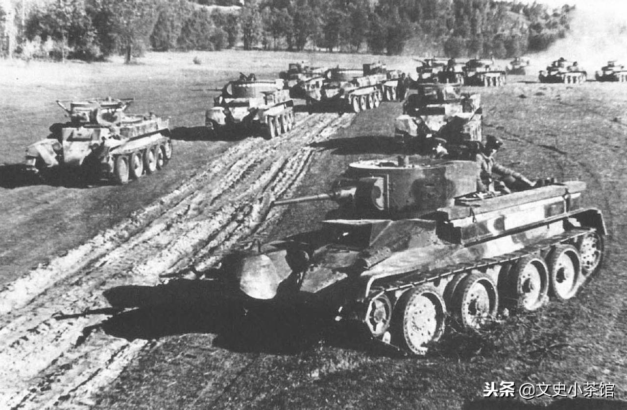 (1941年,苏军BT轻型坦克群开进照片,BT系列坦克速度最高可达86公里/小时)