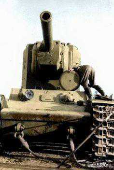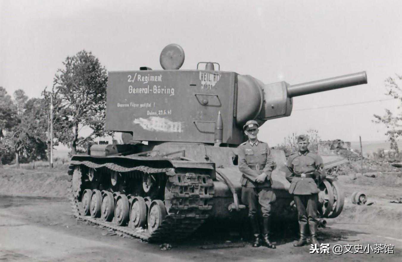 (6月,第8机械化军的KV2被德军俘获,德国人检查后在炮塔上留言,写下军团番号和姓名)