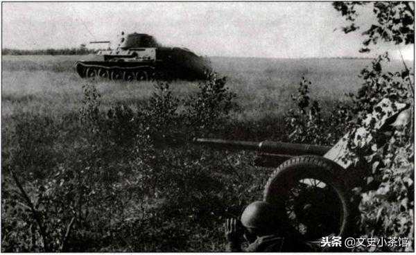(1941年夏,进入位置的T34坦克和45毫米反坦克炮)