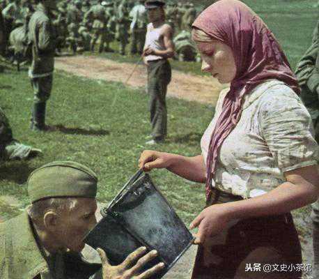 (基辅会战期间,一位年轻的乌克兰少女给苏军伤员喂水)