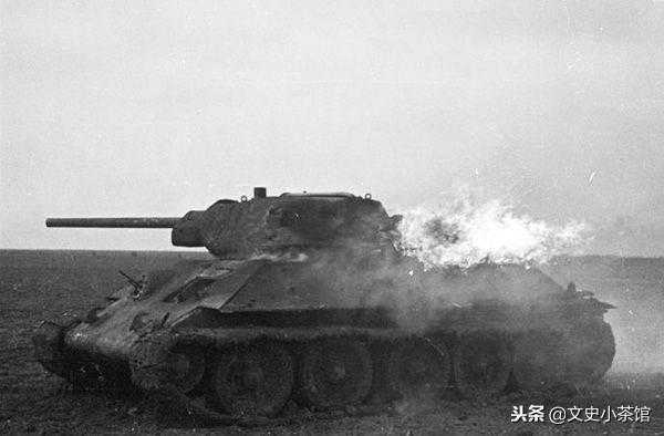 (翻下路基的T34,早期型还有一些传动问题,后来逐渐完善)