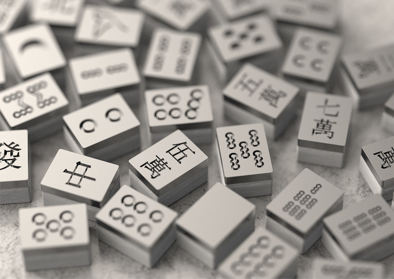 一款类似金属材质的精美麻将设计。韩国设计师Jinkyohan思考麻将作为中国传统牌类娱乐游戏在现代世界的定位。他认为现在麻将的使用具有多样性,除了娱乐之外,有时候还可以作为室内装饰物品,以及作为纪念品送给亲朋好友。自此,设计师大胆创新设计了一款由精致,复杂,多材质,视觉美感,具备使观众感觉平和,安静等多种元素构成的麻将。