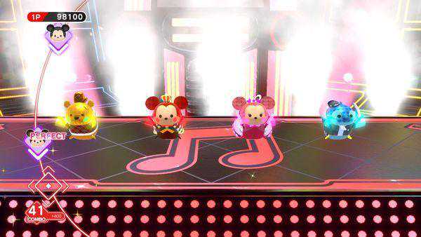 Tsum节奏给出了六首不一样难度的歌曲,游玩方式就是根据下落音符的方向指示,同步朝这个方向挥动Joy-con手柄就可以了,音符的prefect判定也非常宽松。