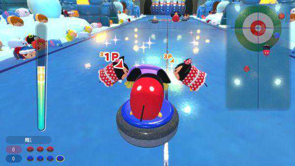 TsumTsum滑冰壶提供了简化模式和标准的冰壶赛制两种类型,个人认为是嘉年华里表现最不错的小游戏,自己在选择力度推出后可以小幅度改变方向,而对手会疯狂擦冰,在游戏开始时还可以选择带有特殊功能的冰壶,为比赛带来了很多不确定性。