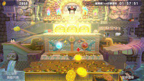 每次落入,就能玩让拉霸转一次,而通过L键可以查看每种组合的具体奖励。需要说的是,玩家扔出的金币是通过玩小游戏所累积的金币,金币在掉下来后可以重新计入自己的账户,而掉入两边水池的金币会被计入拉霸的大奖奖金当中。所以,坦白地说,这是个能“一本万利”的小游戏,不过最有价值的还是想办法解锁TsumTsum角色。