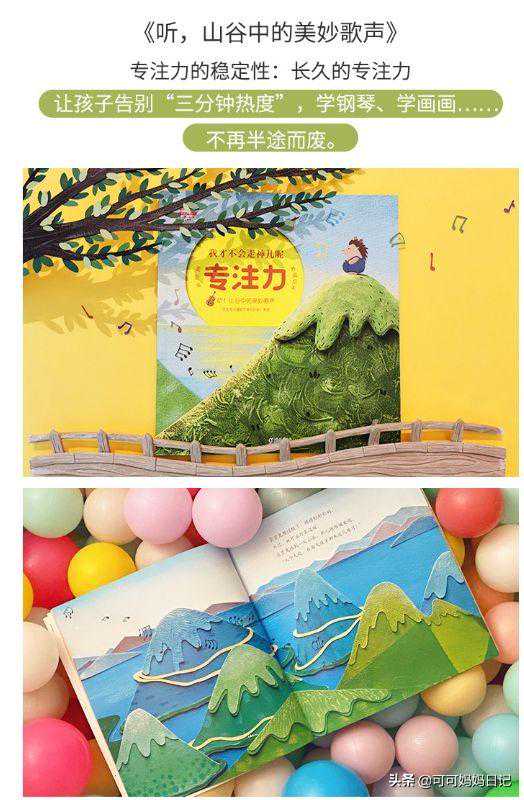 《听,山谷中的美妙歌声》,培养孩子专注力的稳定性,长久的专注力,让孩子告别“三分钟热度”,学钢琴、学画画、学舞蹈等不再半途而废。《嘎嘎嘎,三只掉队的小鸭》重点训练专注力分配:一心也能二用。比如:边弹琴边唱歌,边听课边记笔记等。