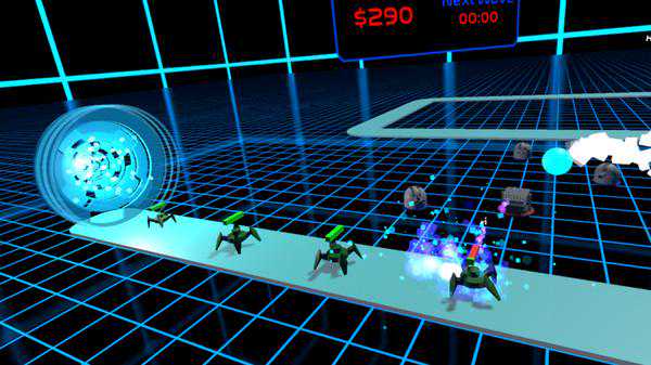 游戏的玩法就是基本的塔防模式,不过游戏提供的可放置的武器种类较少,仅仅只有3种塔可建造。场景建模也很简单,非常单调的一个三维空间,几条简单的轨道就组成了游戏的场景,各方面内容都比较匮乏,体验不算理想。