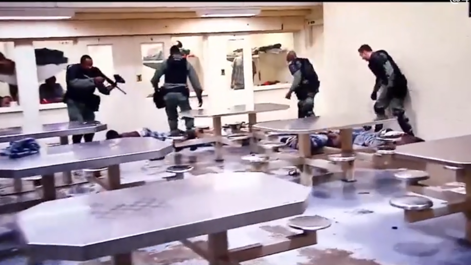 只要有人抵抗狱警就会采取必要的武力措施