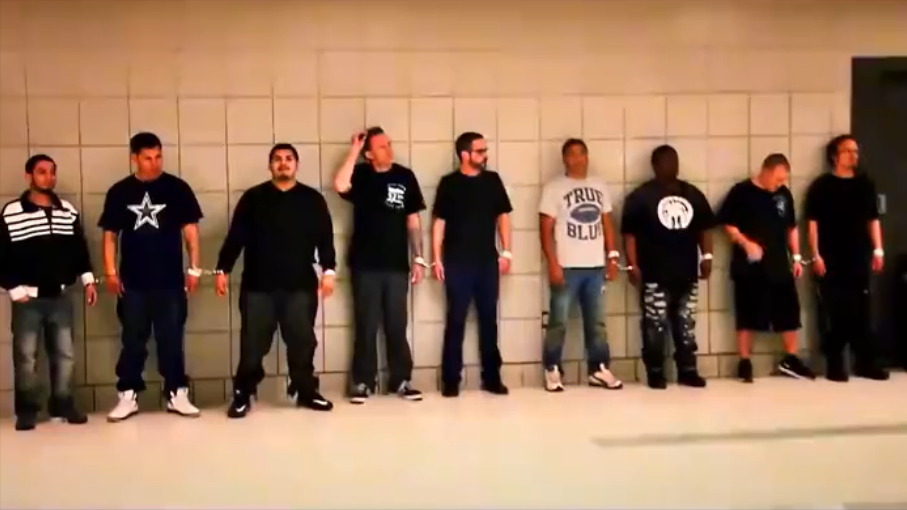 警员开始搜查每个犯人
