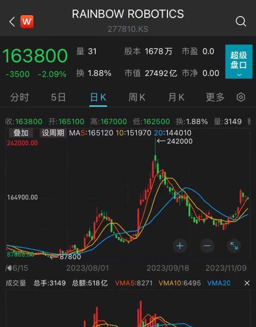 一家名为斗山机器人的公司,生产能与人类协同工作的机械臂,能够完成一系列工作,从煮咖啡、炸鸡、斟啤酒到在机场处理行李等。这些机器人已被广泛应用于全球市场,包括现代汽车、LG电子和欧莱雅等大客户。据悉,该公司的全球收入分布相当均衡,北美、欧洲和韩国各占三成左右。彩虹机器人是由三星电子公司资助的,其股价今年以来已累计飙涨了约3.7倍。三星在今年3月将其在彩虹机器人的持股比例提高至15%。这次事件表明机器人技术在各个领域得到了广泛应用,特别是在工业领域,机器人往往能够完成一些重复性的任务,提高工作效率。然而,随着技术的不断进步,机器人将逐渐扩展到更多领域,例如服务业。彩虹机器人的成功例子证明了这一点。在与机器人共事的时候,人们也需要学会如何与机器人进行协同工作,以便充分发挥机器人的优势。在这个过程中,可能会出现一些问题,例如如何实现机器人与人类之间的有效沟通,如何保证机器人的安全性等。