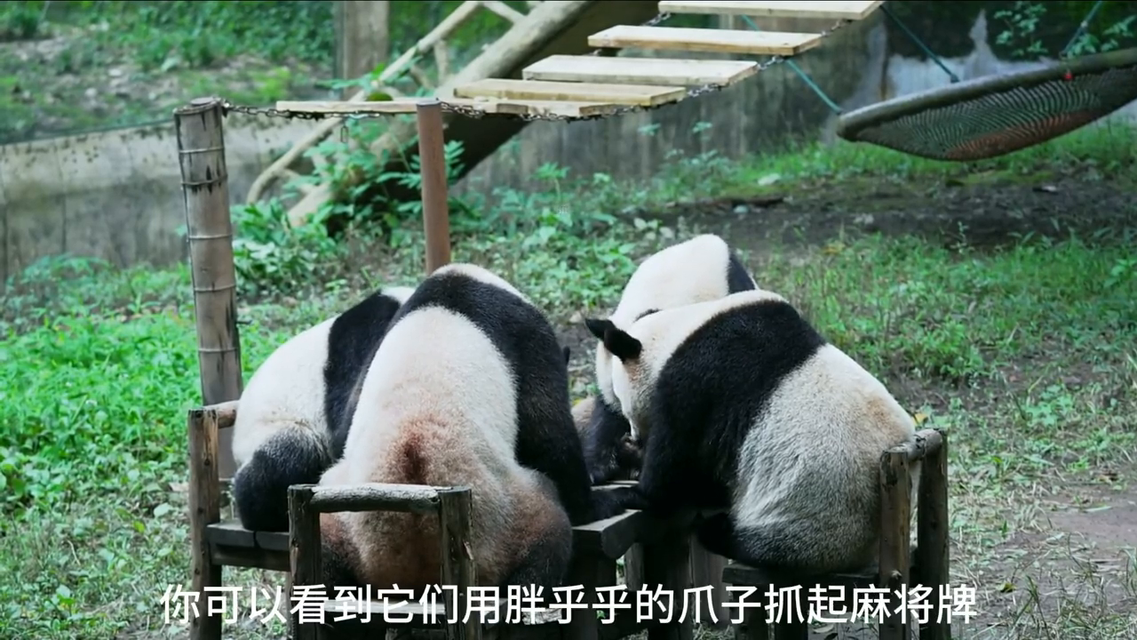 有四只可爱熊猫,它们组成了全网最铁的组合:四喜丸子。它们的生活充满了乐趣和温馨,尤其是当它们围坐在一起打麻将的时候,每只熊猫都安静地坐在自己的位置上,没有互相争夺眼前的食物,而是你一口我一口,温馨地分享着,这和谐美好的画面直是太可爱啦!
