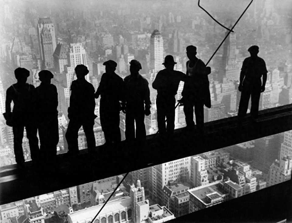这些罕见的照片揭示当时建造帝国大厦时工人们在安全防护保障措施方面非常简陋,工人们身上甚至没有捆绑安全绳。