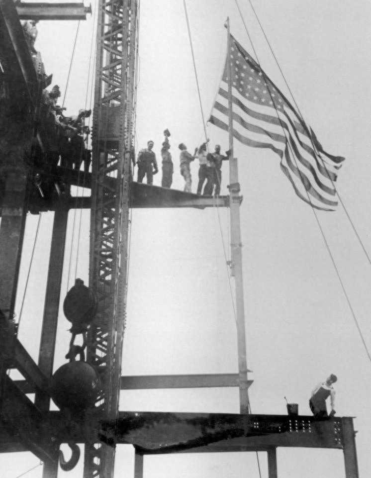1931年5月1日,美国总统赫伯特·胡佛在首都华盛顿特区亲自按下电钮,点亮大厦灯光,帝国大厦正式落成,成为当时世界最高的建筑。