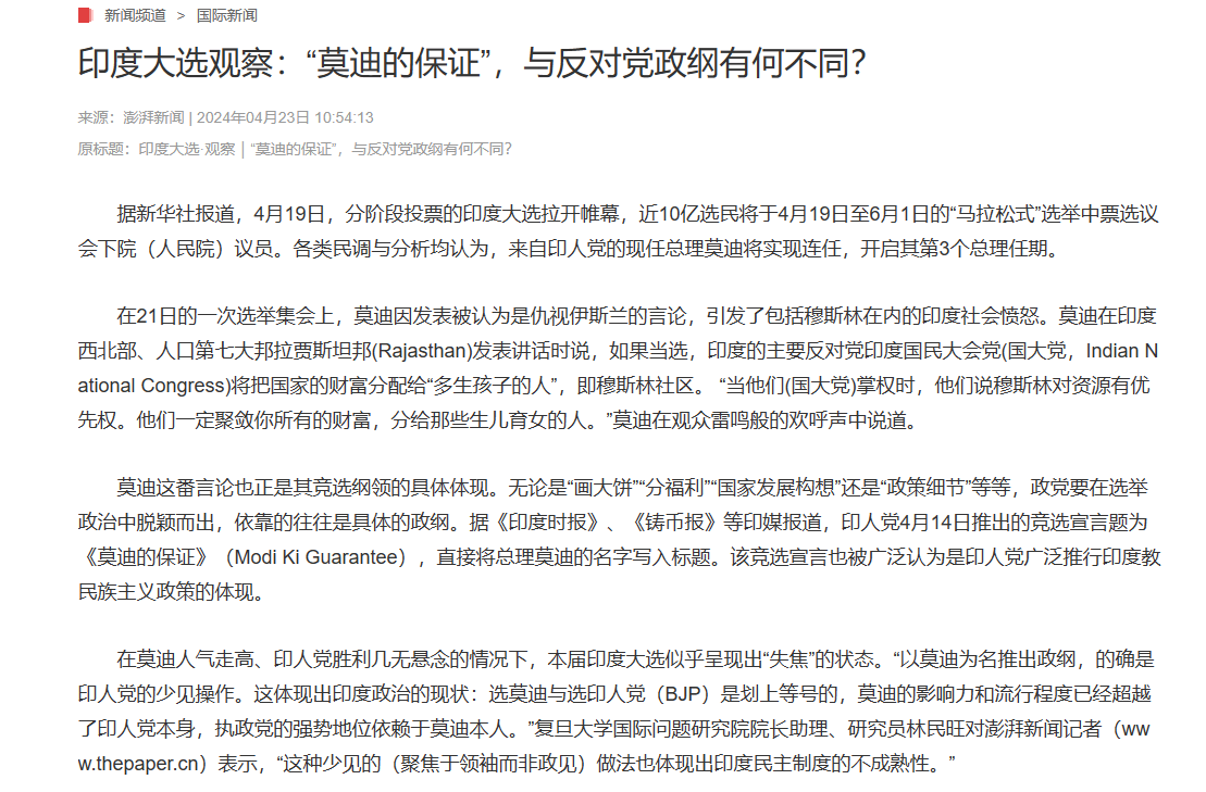 不过根据现在的票数来看,印度总理有很大的可能性继续连任。