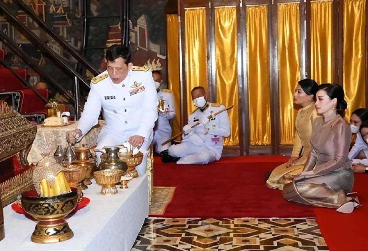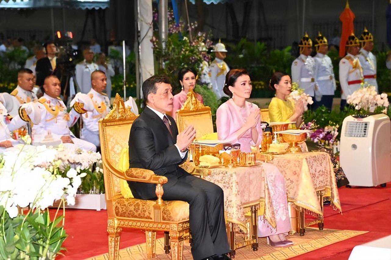 当泰王忙活的时候,苏提达和希里万纳瓦瑞坐在一旁,很是认真地观看着。