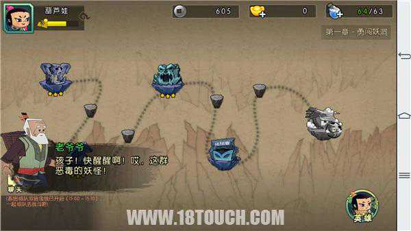 不论是“葫芦娃,葫芦娃,一棵藤上七个瓜”or“爷爷,爷爷,快还我爷爷……”游戏内植入的音效同样原汁原味,经典童声代入感极强。游戏内其它对白就只有文字过场,这让重温故事的小编倍感可惜,毕竟本作还原度还是很高的,除游戏需要外极少出现自创台词。