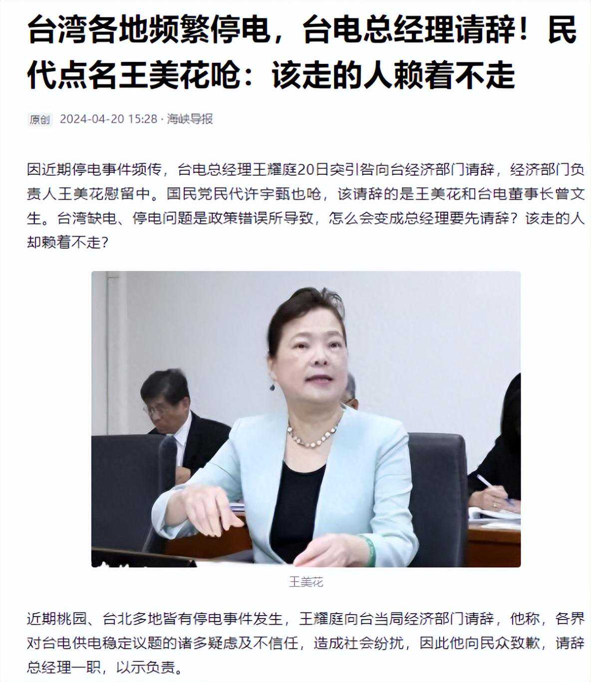 台湾各地频繁停电,台电总经理请辞!民代点名王美花呛:该走的人赖着不走