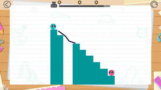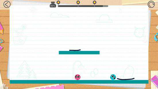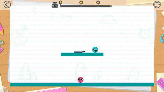 先照上图画个支撑物,之后画条让蓝球往右边移动的线即可。可以发挥自己的想象力获得更多的解法。
