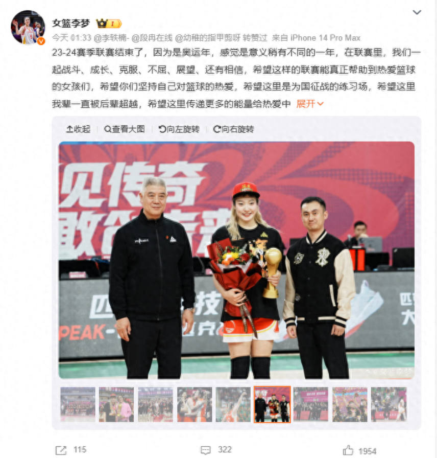 李梦荣获总冠军姚明也现身拍照之后的比赛中,四川女篮和内蒙古女篮在赛场上可谓是不分伯仲。