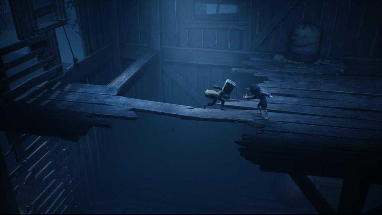 每一段都是很惊悚又刺激的冒险。游戏巧妙在解谜中结合了隐蔽潜行、平台跳跃等多种动作元素,且玩家们也不再是手无寸铁,有些时候更能拿槌子砸爆小孩的头,过程中也时常有小六陪伴而不会太寂寞。其中在医院中有一群怪物必须用手电筒照射才会停止动作的设计更是很有趣。