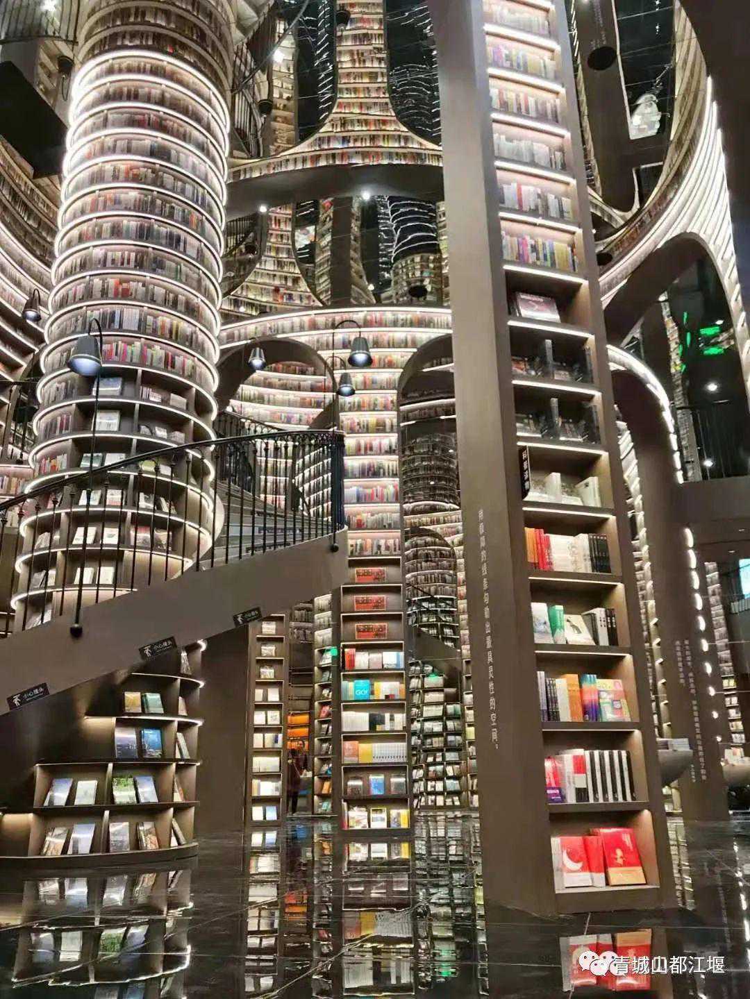 受都江堰水利工程启发,设计师别出心裁地将书墙打造地蔓延向上,高耸巍峨,变成一道道超级“城墙”,承载起书籍的同时,又像是一处洞天福地,神秘且充满魅力!