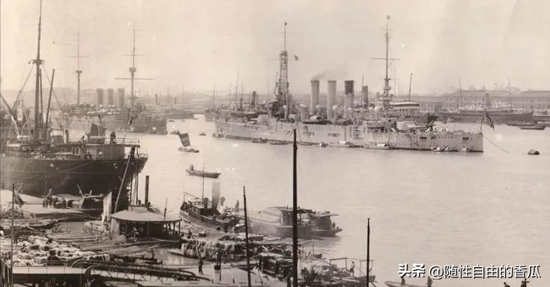 1020年代上海黄浦江,军舰和船只密密麻麻一片。