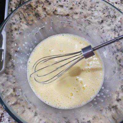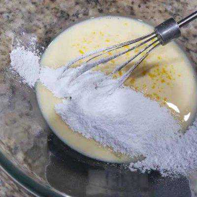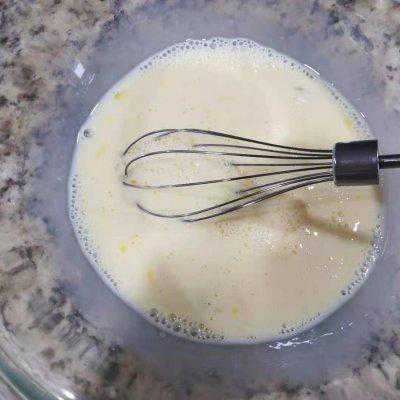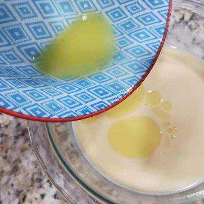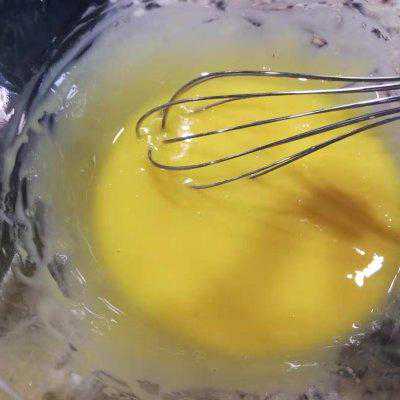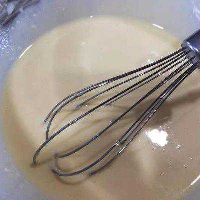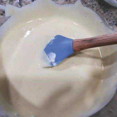 17、如果牛奶是冷藏的要先回温,将牛奶分2次加入蛋黄中。