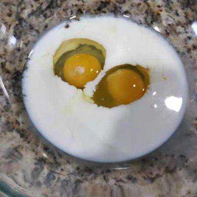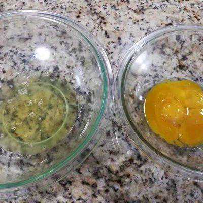 14、⭕在我们把面粉液放入冰箱冷藏时,我们就可以来做戚风蛋糕片。用做蛋糕卷的办法即可。鸡蛋分离,蛋白冷藏。