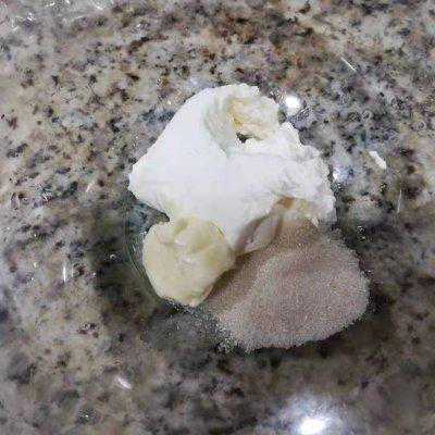 31、把软化的奶油奶酪、黄油和砂糖用打蛋器低速搅拌均匀。