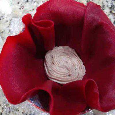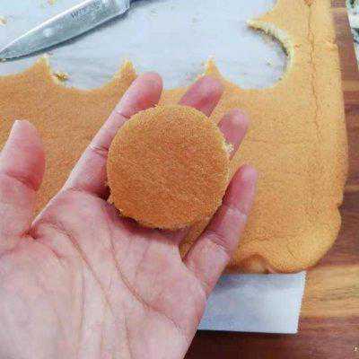 47、再盖上直径5厘米的蛋糕片,接着挤上夹馅。
