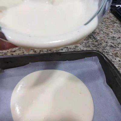13、将面皮底面垫上烘焙纸,放盘子里或晾架上放凉。接着在平底锅里重复上面的程序,直至面粉液全部用完。⭐做好的面皮之间可以用烘焙纸隔开再叠放在一起。