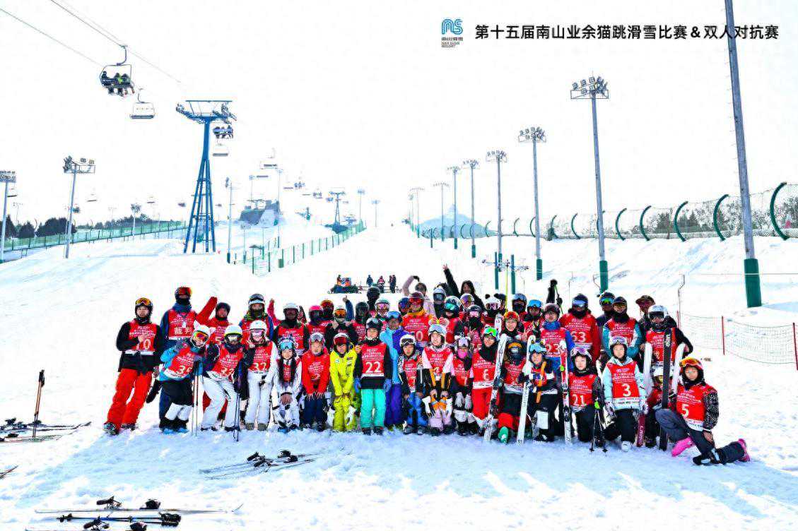 南山滑雪场一直致力于“猫跳”即自由式滑雪雪上技巧运动的推广,南山业余猫跳滑雪比赛是中国首个民间正规正式的“猫跳”比赛,由南山滑雪场创始人卢建博士创办于2008年。经过十余年精心培育,南山“猫二代”已初具规模。本届赛事参赛选手年龄跨度从6岁至51岁,其中有近20名青少年选手通过审核。几代滑雪爱好者集结南山,相互切磋交流,用热爱浇灌“蘑菇田”。