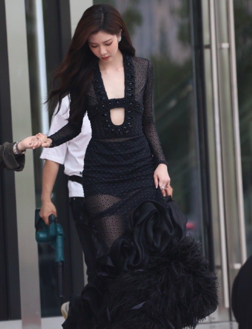 和宋茜一样身着黑色镂空鱼尾礼服的,还有张一山曾经的绯闻女友宋妍霏。