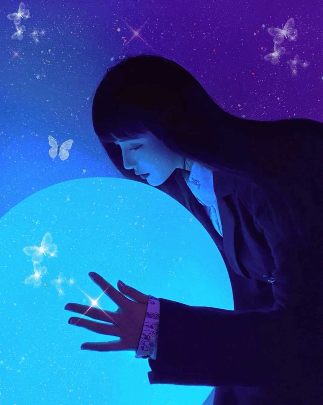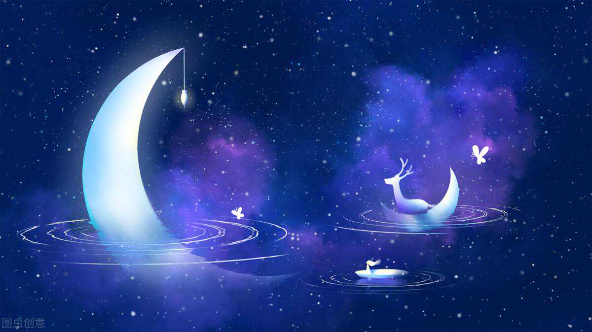 星与月与鹿,唯美广阔星空,深蓝色的梦游星空系列插画