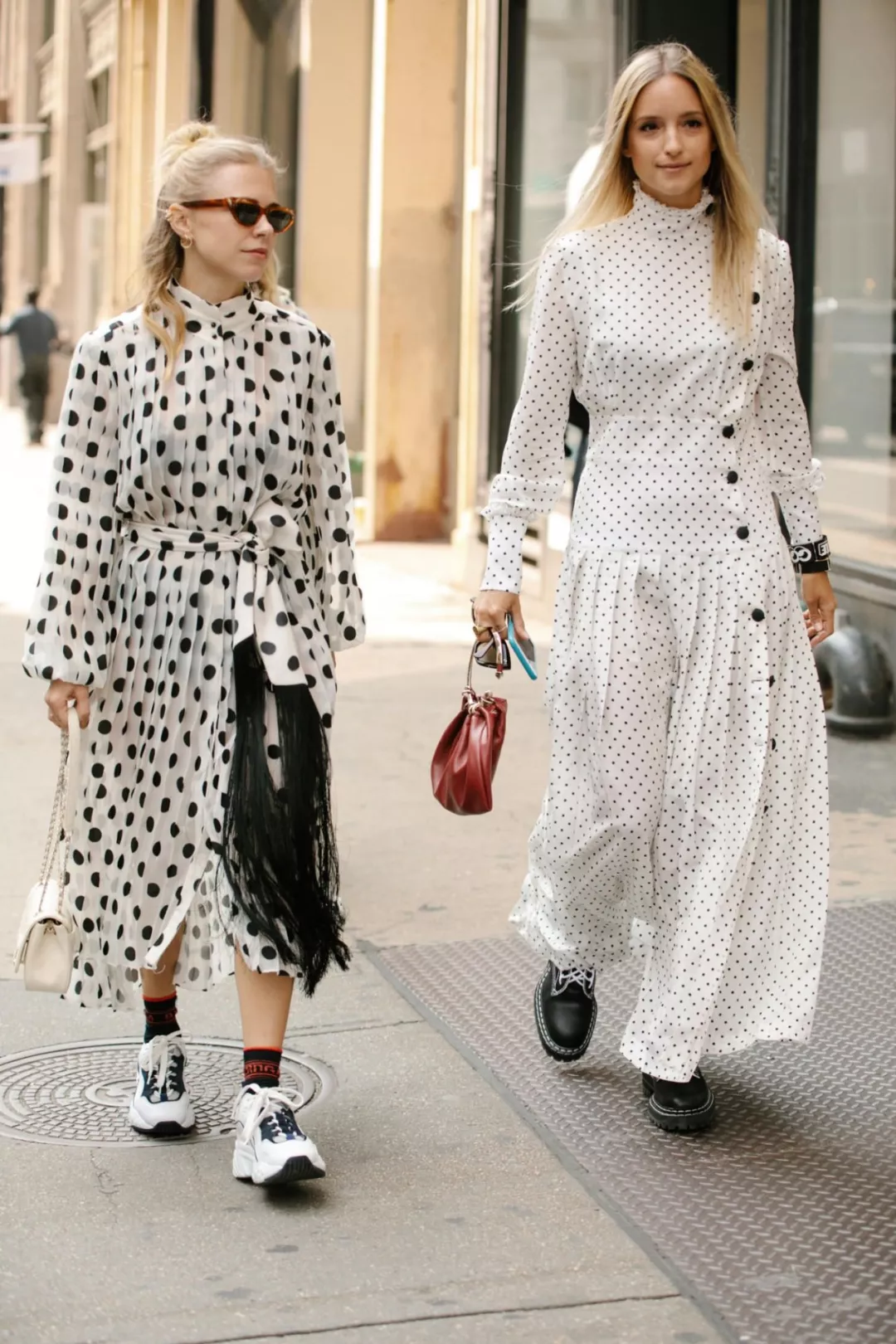 除了大小的区别外,波点元素还有一个很重要的区别就是颜色。颜色的不同选择不仅影响我们的肤色,还会影响整体的感觉。