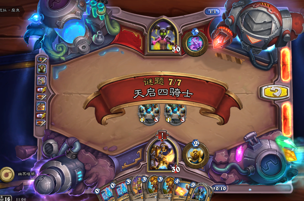 最后一关:天启四骑士。首先上DK,然后使用一次回能量,接着英雄技能,下地精王,下树精,再用一次被动,回能,被动,树精,被动。游戏结束。