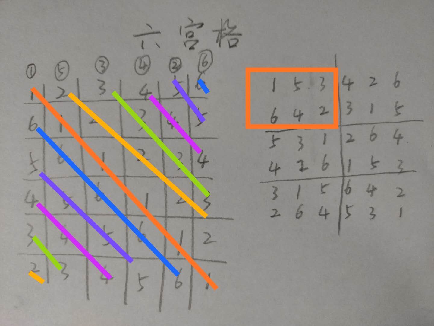 6阶幼儿数独:先按颜色放数字,然后调整列保证每个宫的数字唯一。搞定!