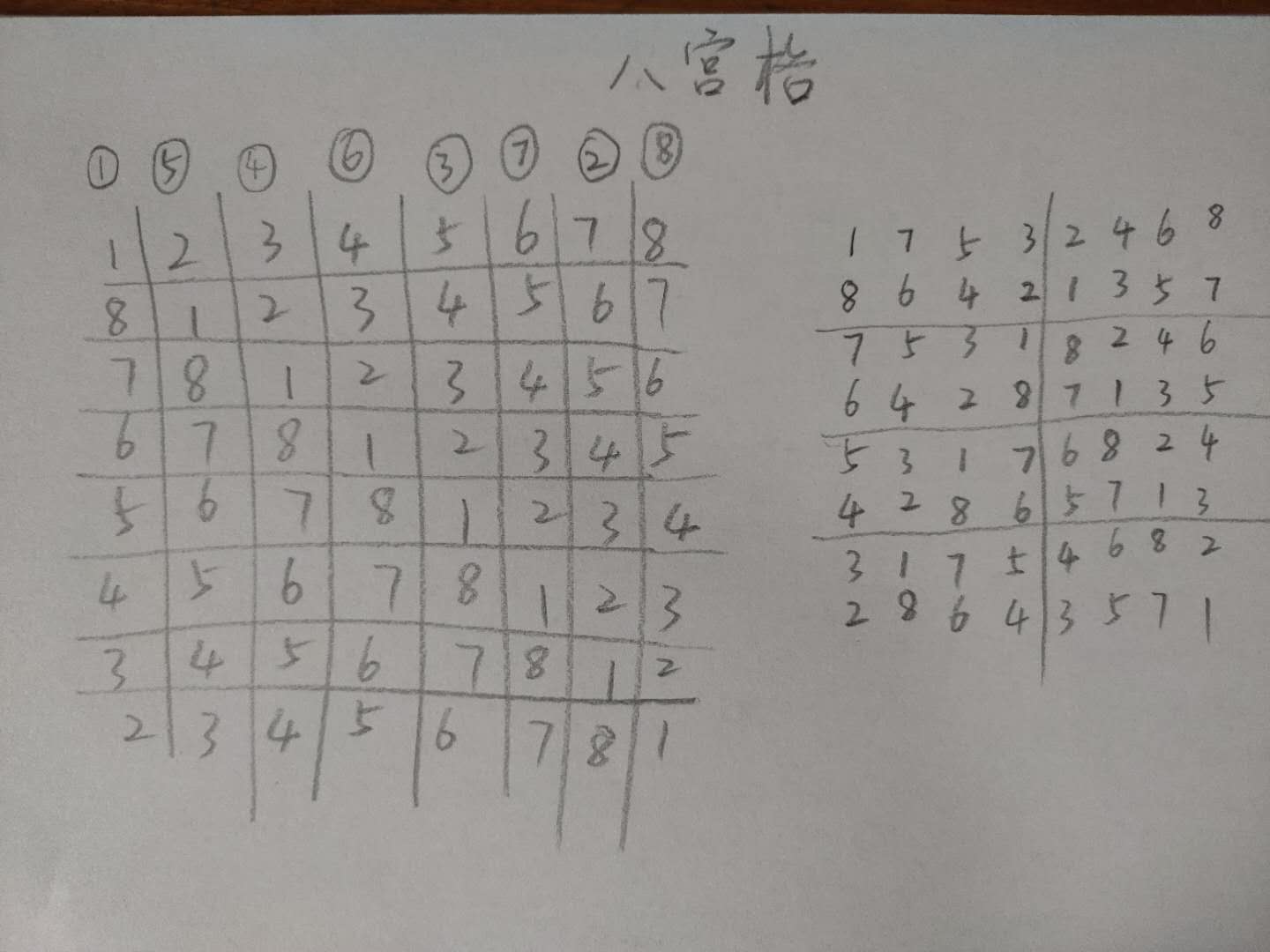 “行和列不能有相同的数字”,能否按对角线排数字,以此实现行和列的数字不同呢?