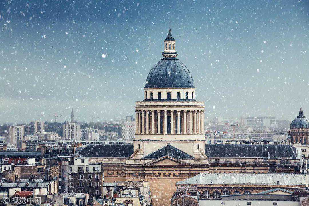 法国巴黎大概在北纬48度左右,冬季的巴黎是这样的,雪下起来有点“温柔”;