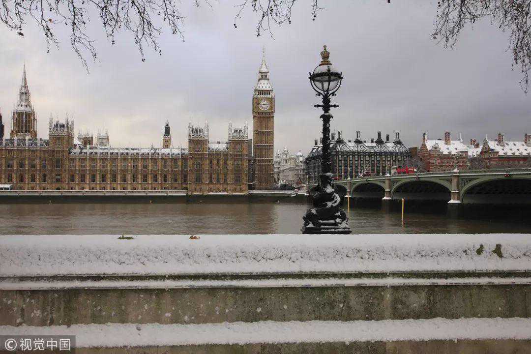 再往北,英国伦敦位于北纬51度左右,冬天是这样的;