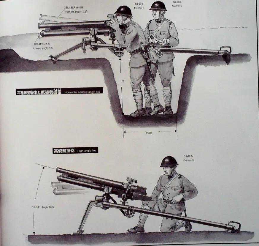 大正十一年式37毫米平射狙击炮两种发射状态,挖坑后进一步降低高度