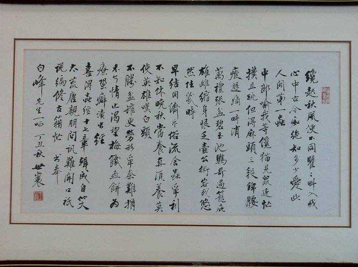 说起王世襄,玩蛐蛐的人都知道,他是玩蛐蛐的泰斗级人物,主要是因为他编纂了一部《蟋蟀谱集成》。经范用引荐,36岁的白峰得以结识了已85岁高龄的王世襄先生,并成为忘年交。在白峰家的客厅里,显要地悬挂着一幅王世襄先生的书法作品,是老先生作为玩虫好友题赠给他的一首《自嘲诗》,正可作为二人爱蛩(古指蟋蟀)之交的佐证。所以,当白峰谈起文化怪杰王世襄先生,其传奇色彩更为亲切而真实。