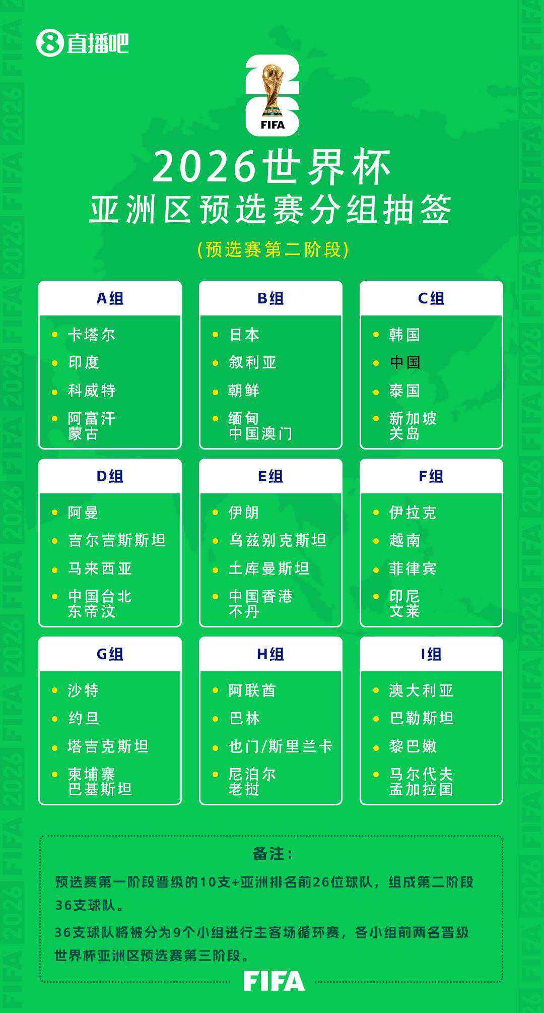 在刚刚结束的2026美加墨世界杯预选赛亚洲区36强阶段比赛抽签仪式上,中国队被分入C组,同组对手为韩国队、泰国队以及新加坡队与关岛队的胜者。